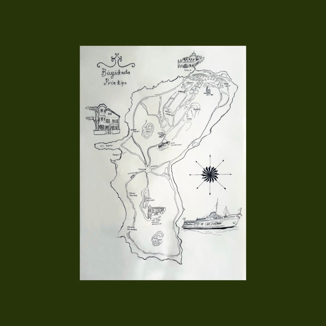 DESIGNED EXCLUSIVELY FOR MARCHÉ ISTANBUL BY PRINTKIPO, THE LOCAL RISO PRINT STUDIO OF THE ISLAND, OUR “WITH LOVE FROM BÜYÜKADA” STAMPED 5 DIFFERENT POSTCARDS AND BÜYÜKADA MAP MAKE A WONDERFUL GIFT FOR YOURSELF OR YOUR LOVED ONES!