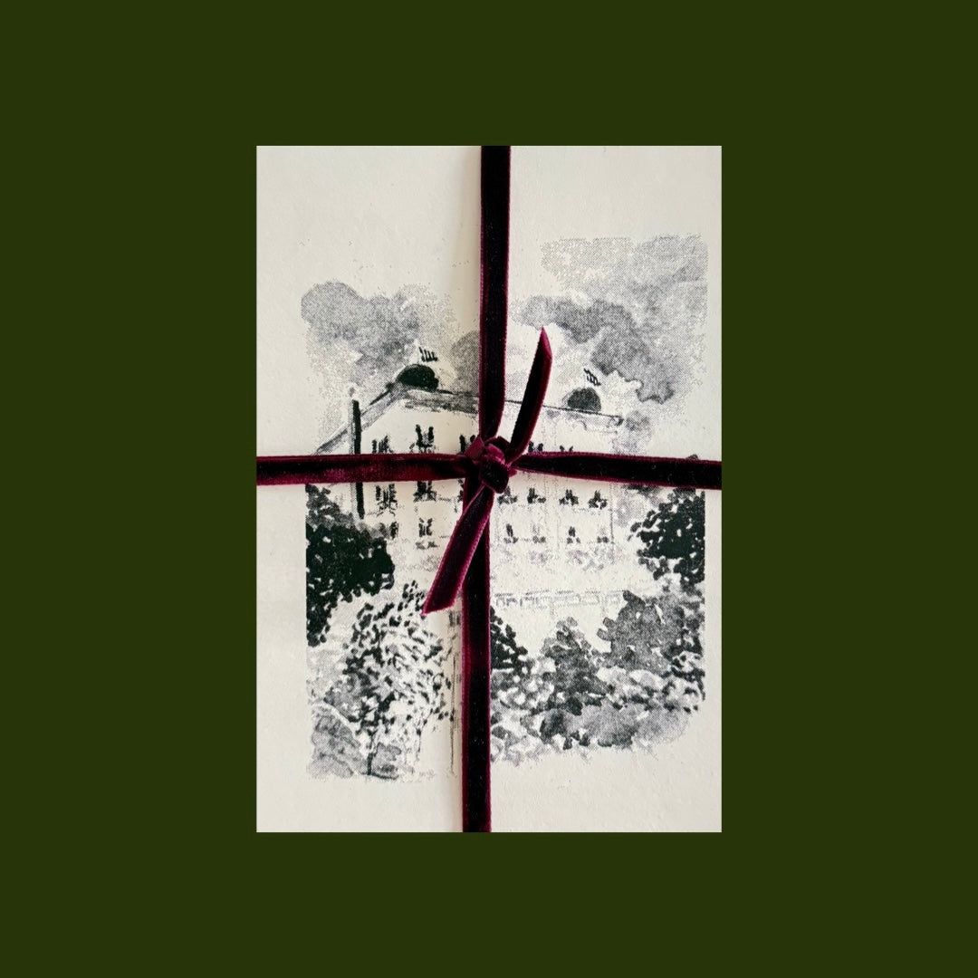 PRODUCED IN LIMITED QUANTITIES, EACH POSTCARD HAS BEEN CAREFULLY PREPARED BY HAND AND BEAUTIFULLY WRAPPED WITH VELVET RIBBONS.